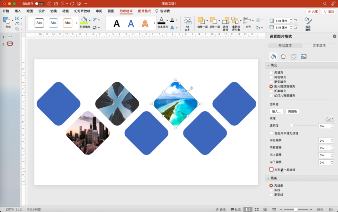 选择其中一个矩形,在设置中选择图片填充,