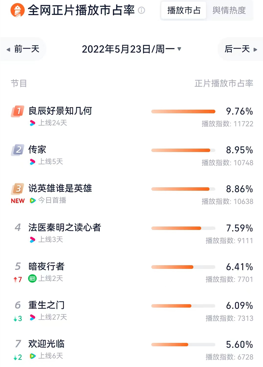 不过,上线首日在《传家》、《法医秦明之读心者》这些热门剧的夹击下冲进前三,也实属不易。