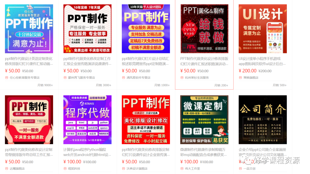 像某壳、某宝,都能找到PPT,甚至是PPT定制服务,但是价格却是十几到几百不等。而这只是一份PPT的价钱。