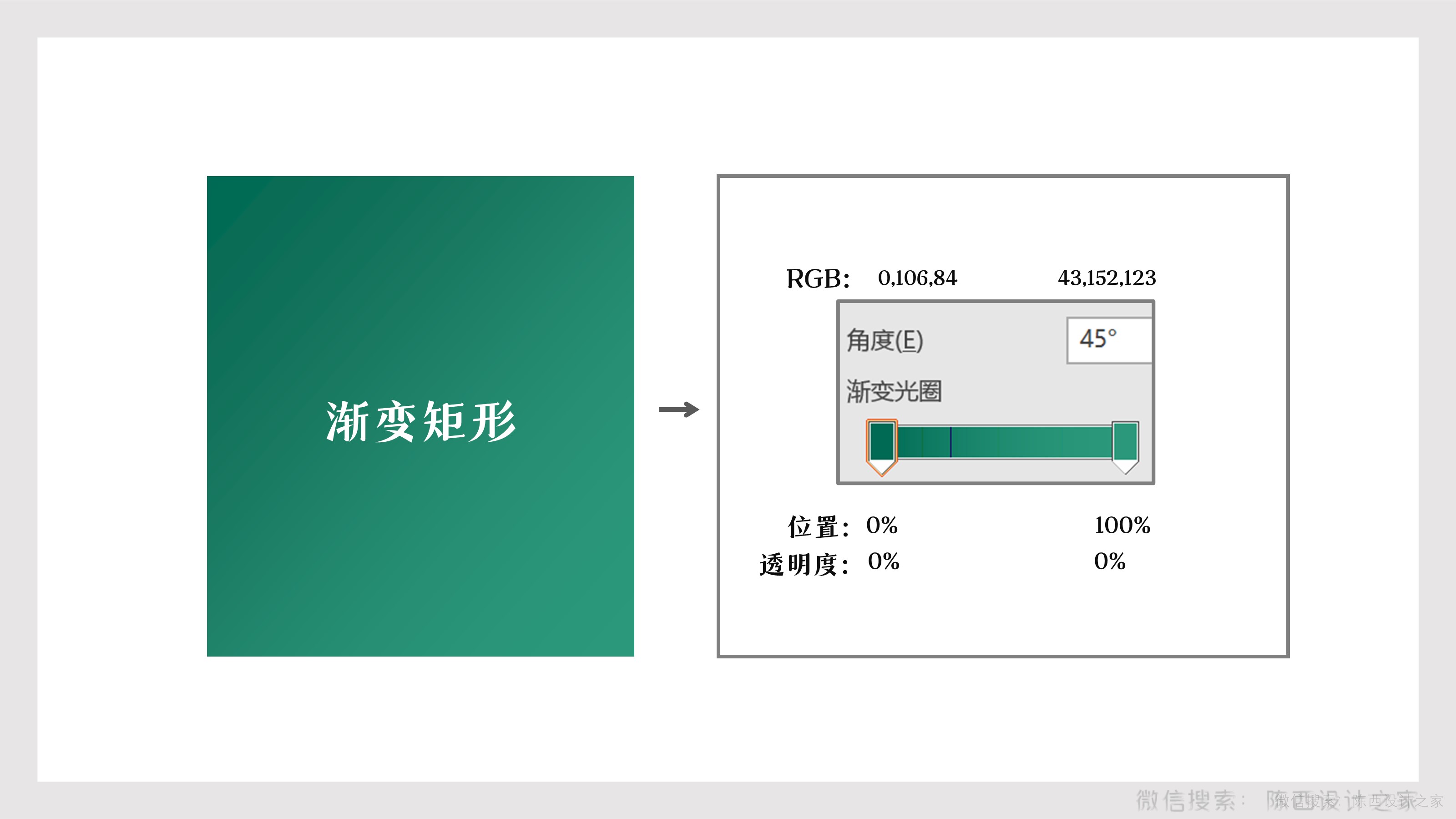线性渐变,渐变角度45度,渐变颜色RGB数值可以参考上图。