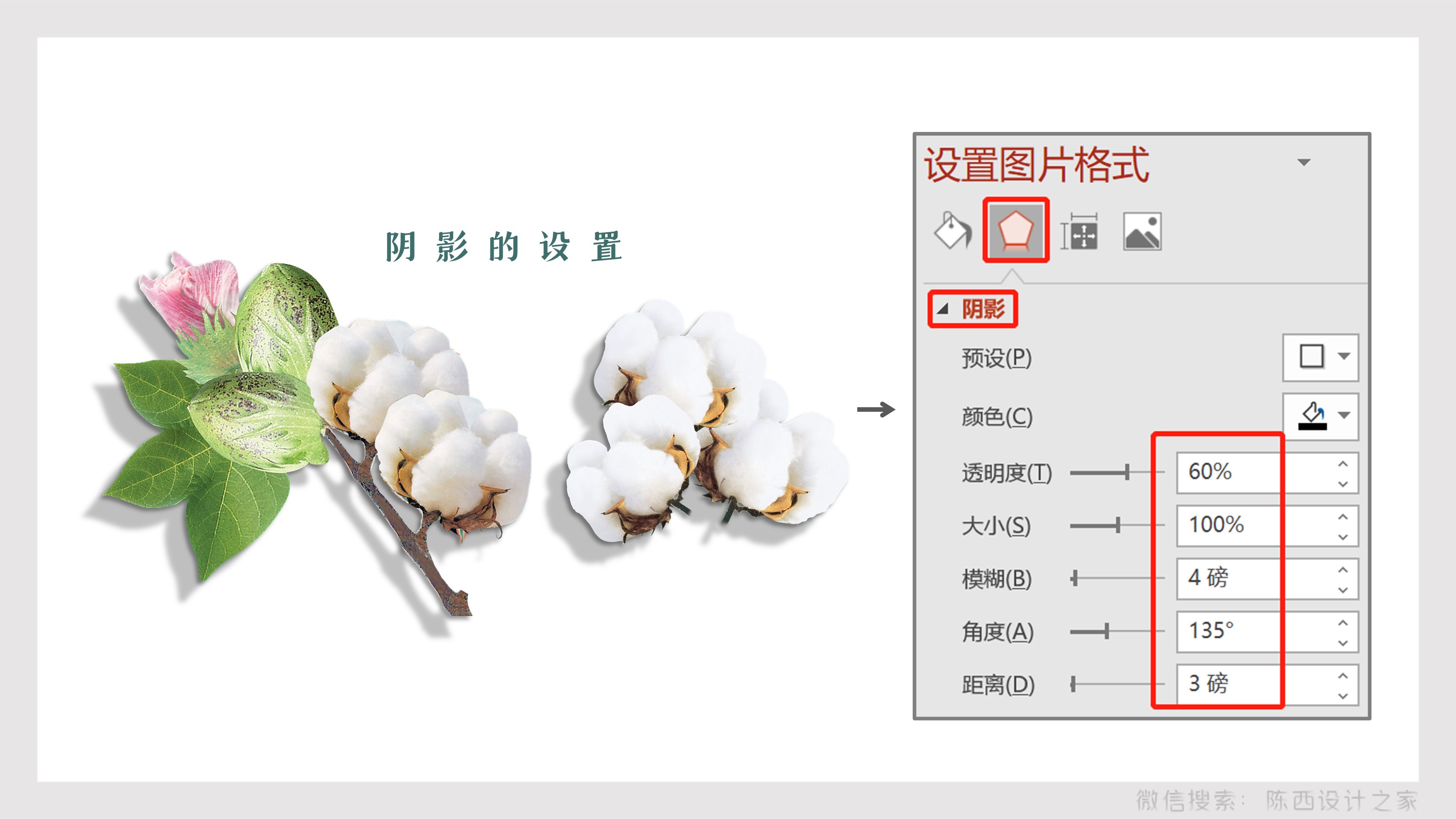 组合之后添加一个左下角的阴影。这里阴影设置和我们之前教程中设置的有些不同。
