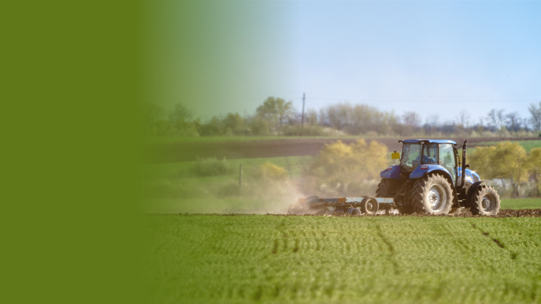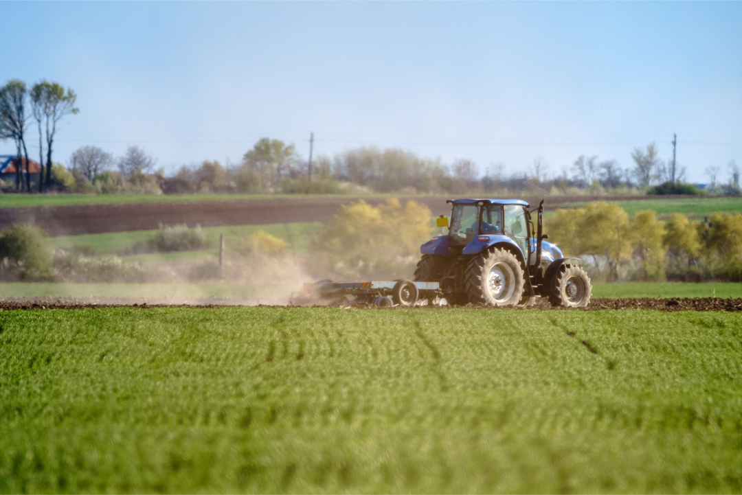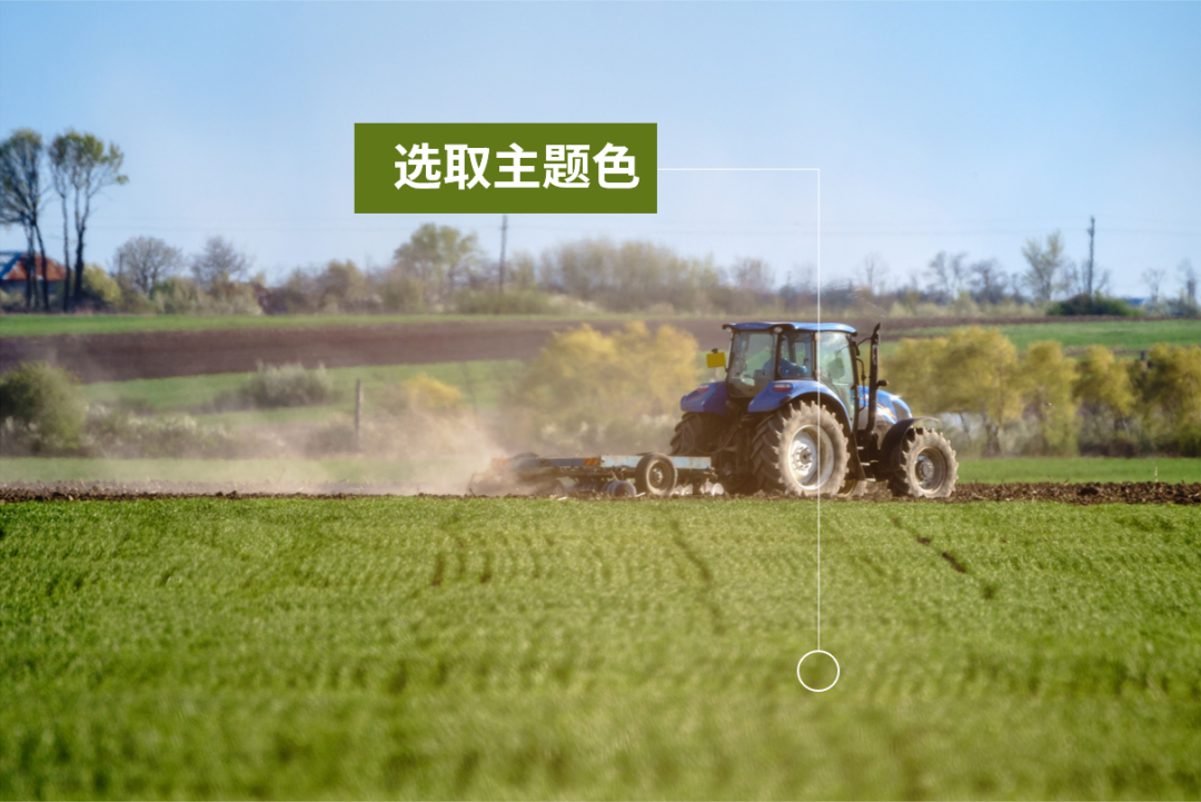 寻找一些农田播种场景或者是农机工作的场景图片作为主画面,这里我们选用了一张农机在农田耕作的素材并进行一定的裁剪。