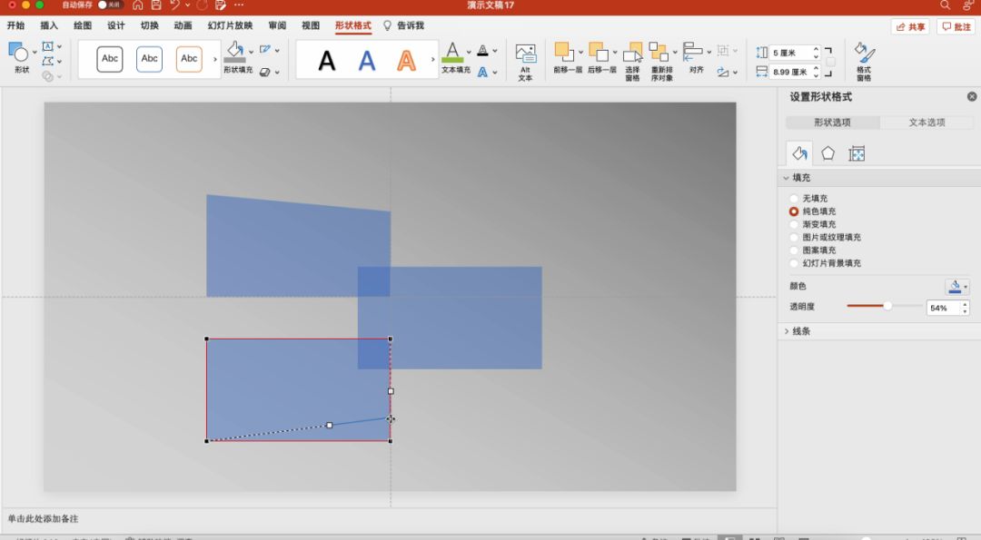 在矩形交叉的位置插入三角形的阴影,