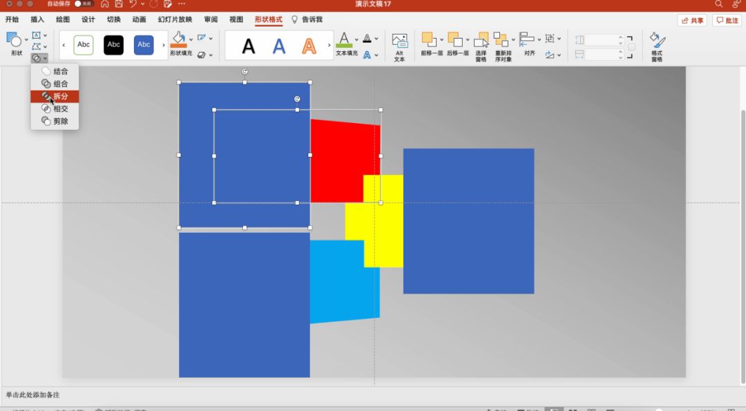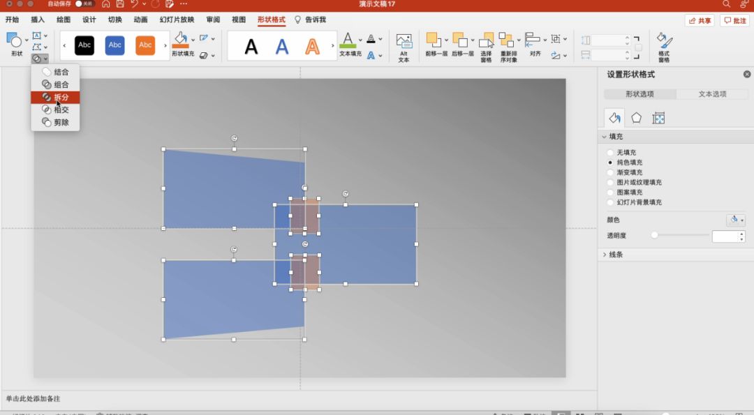 单击“形状格式——拆分”。