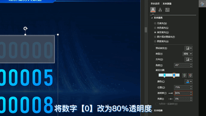 将数字0改为80%透明度