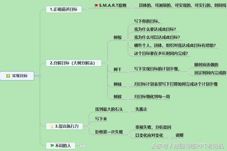 - S.M.A.R.T原则:具体的、可测量的、可实现的、可实行的、时间线