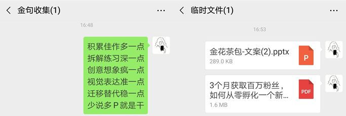 平时看到大叔、老秦还有一些老师在群里的分享的好句子,就随手转发到金句收集的群里。