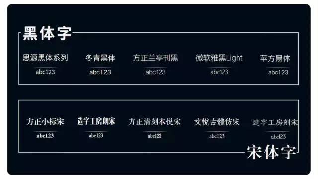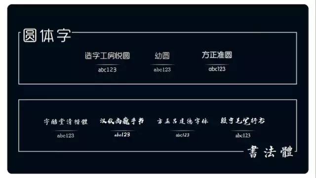比如:黑体简洁、正式、有现代感;圆体细腻、圆润;宋体古朴,文艺;书法体飘逸自然,有艺术感。