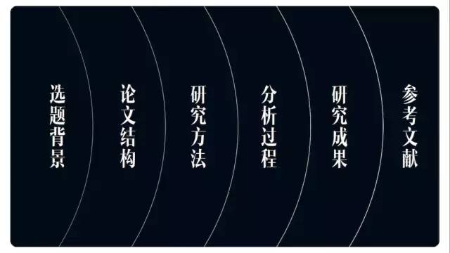 举个例子,论文答辩的PPT通常会包含“选题背景→论文结构→研究方法→分析过程→研究成果→参考文献”这一套流程框架,而对应的PPT就应该遵循这样的整体逻辑进行制作。