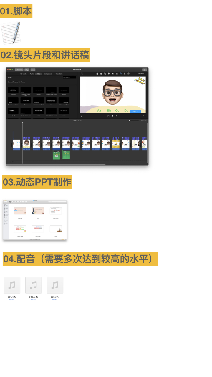 这里提出,可以制作1分钟以内的微课。例如单词朗读视频。这个特别适合学生学习。