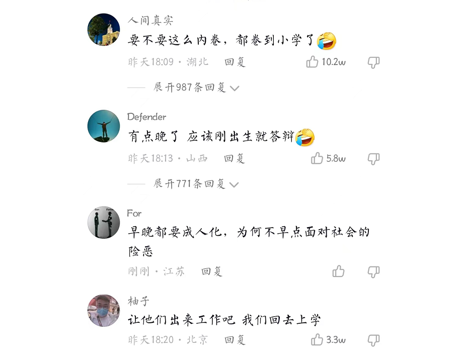 像网友说的,这有些太卷了,确实挺卷的,小学生都开始论文答辩了。但仔细一想,其实是利大于弊的,这也不算是压榨童年。
