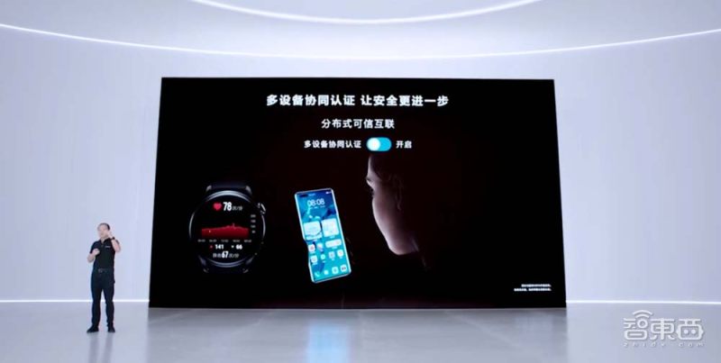 基于超级终端的多设备协同,鸿蒙OS会支持多设备协同认证,甚至有些设备不支持高级别认证时,其他设备可以帮忙。比如手表和手机之间的协同验证,手机在解锁同时还需要手表戴在手上,让人脸认证安全性再次提升。