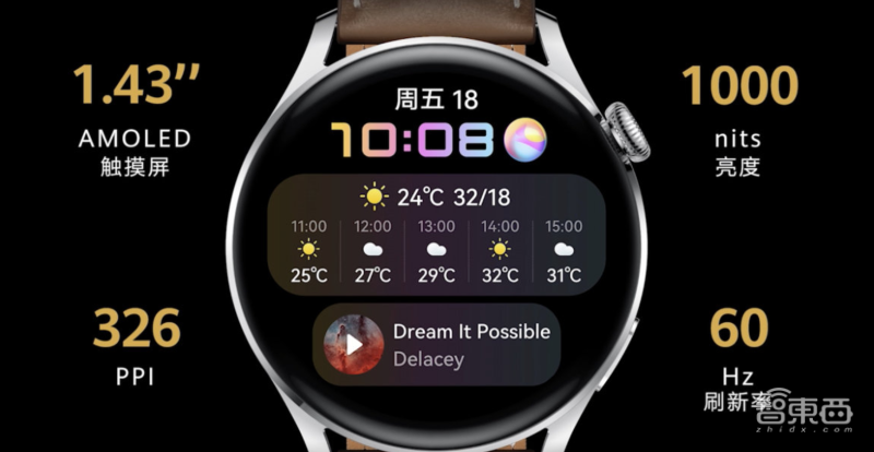 在硬件配置方面,华为Watch 3 Pro搭载了一块1.43英寸OLED屏幕,屏幕PPI为326,机身采用钛合金打造,表面为蓝宝石材质。