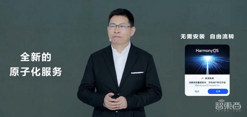 华为分享也会升级到“服务分享”,比如分享一个新闻,过去只能分享一个链接,而鸿蒙OS希望可以直接将用户的实际体验分享给用户,可以分享出一个“原子化的服务”,并且接收用户不需要安装APP。