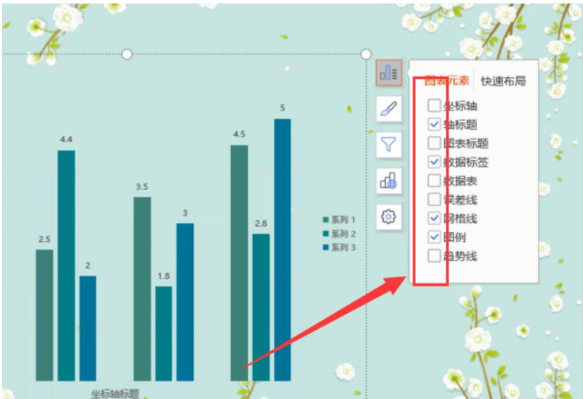 这样图表就制作完成了,接下来我们选中图表,点击图标元素,把不需要的元素取消勾选: