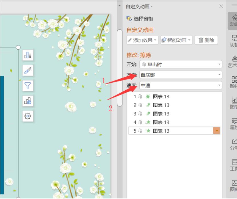 然后修改动画的格式内容,我们可根据自己的需要进行选择: