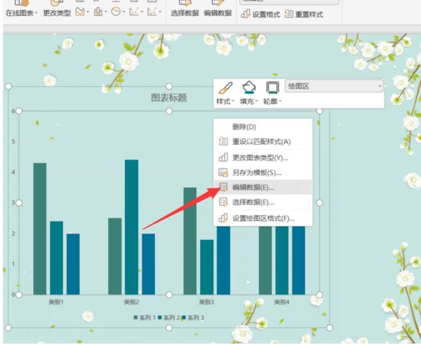 这时候会弹出一个WPS演示中的图表的Excel表格,在这里编辑好需要的数据: