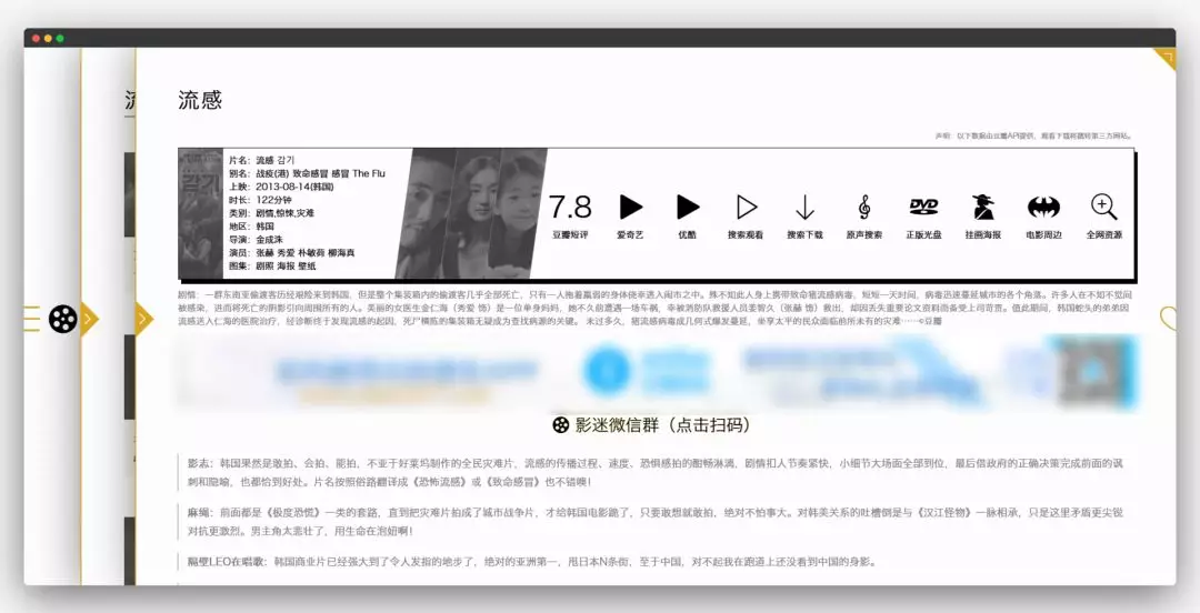 它称得上是近乎全能的电影网站,点开一部电影,你可以看到简介、评分、影评、影视原声、播放下载地址,甚至光盘、周边的购买链接。