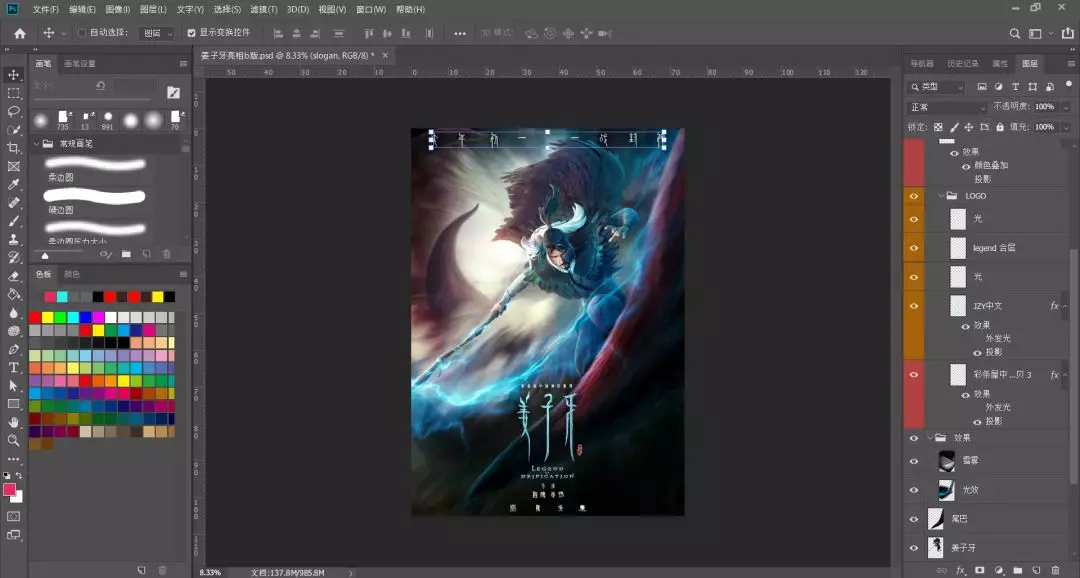 人物图片墙的元素,就是直接从海报源文件中提取的,节省了很多收集和打磨素材的时间。