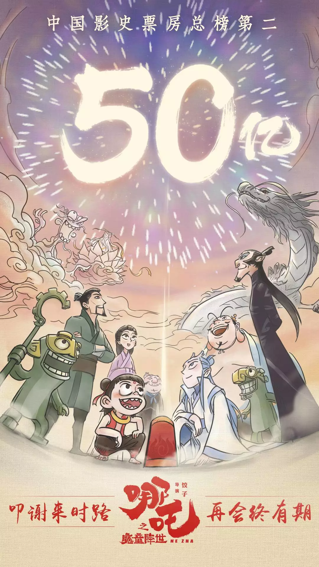 去年《哪吒》就引发了一波讨论热潮,被称为「国产动漫之光」的它,最终票房 50 亿,拿下国内动漫电影票房第一,总榜第二的好成绩!