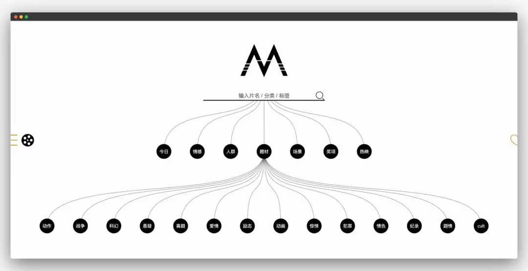 MVCAT 有着精致的 UI 和别具一格的布局,将各个影视分类以树状图的形式展现出来,可以按照主题、情感、获奖影片、当前热映等多种标签筛选,更加有针对性地找到喜欢的电影。