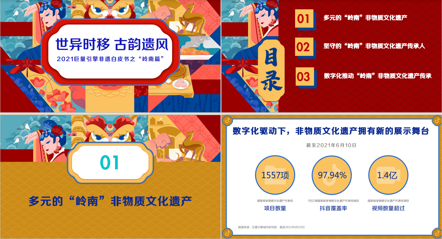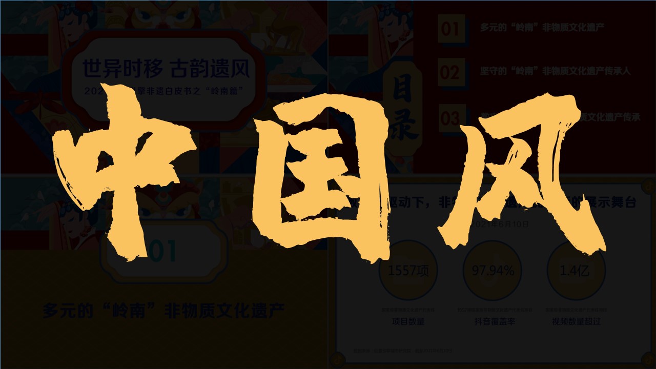 最近,巨量引擎发布了一份岭南的非遗PPT白皮书,它的主题是 [世异时移,古韵遗风]。