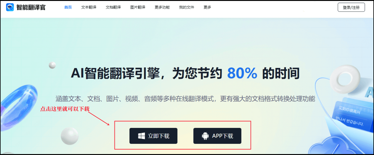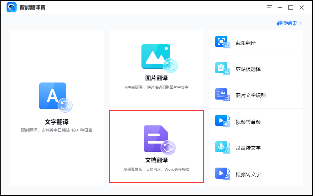 给大家介绍的是智能翻译官。有些朋友听到名字就知道这肯定是个专业的翻译软件。没错,它是一款智能翻译工具,它具备多种翻译功能,如图片翻译、文字翻译、文档翻译等,满足您不同的翻译需求。接下来我们来看看怎么操作吧!