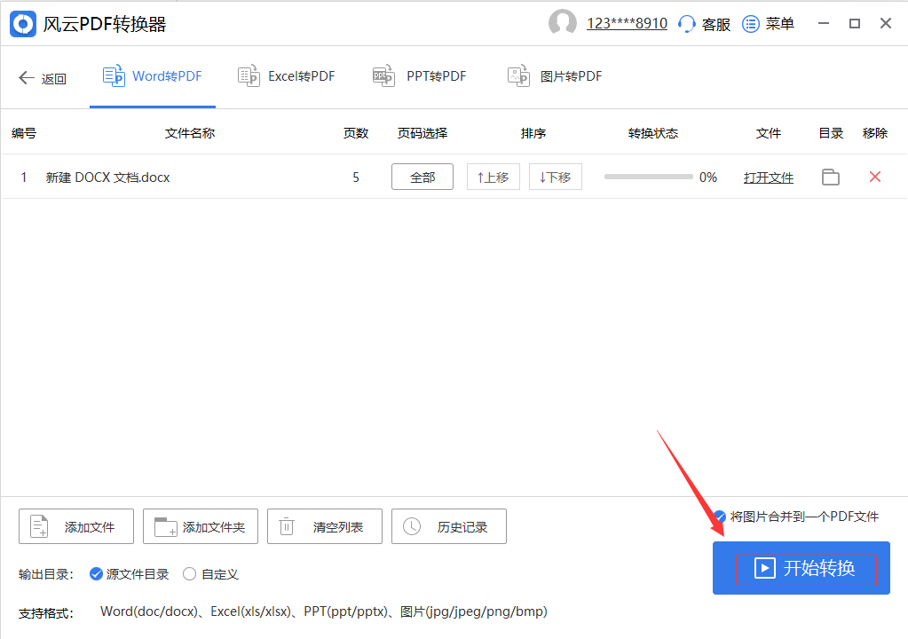5、点击将图片合并到一个pdf文件,这样你就能方便查找,避免其它转换的图片丢失。