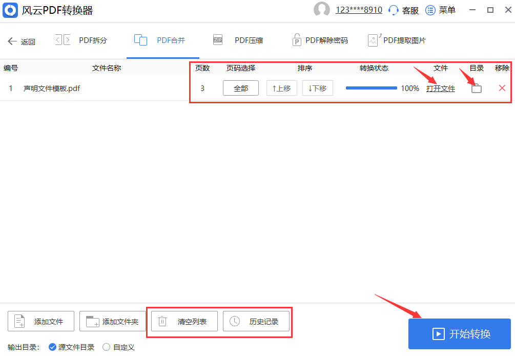 2、文件上传后,可以修改具体参数。所有文件都可以自定义选择页码和排序方式。操作方法简单。设置完成后,可以点击【开始转换】功能。当文件显示为100%时,可以打开管理,查看操作记录,还能自由的清理文件,历史查询也很方便。