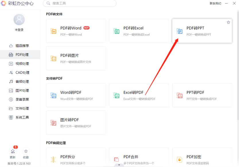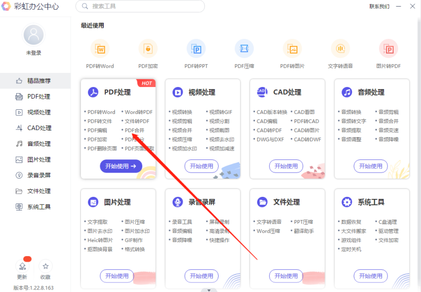 第1步,进入彩虹办公软件,选择这里的这个【pdf处理】功能。