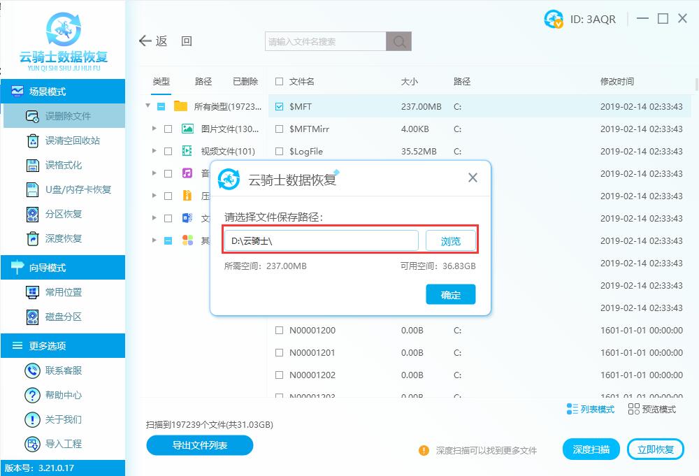 怎样恢复误删文件数据?如果重要的文件被自己误删了怎么办?如何找到删除的文件?我们可以使用文件误删恢复软件,轻松恢复文件。本文将推荐文件误删恢复软件——云骑士数据恢复大师。