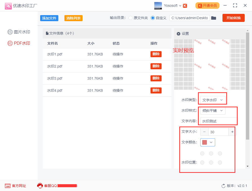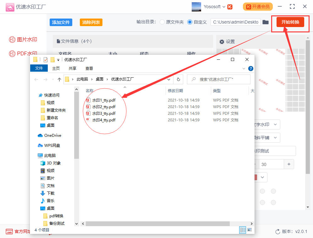 步骤4,完成设置后就可以点击【开始转换】按钮启动软件了。稍后软件会打开一个文件夹,所有添加完文字水印的pdf文件会全部保存到这里。