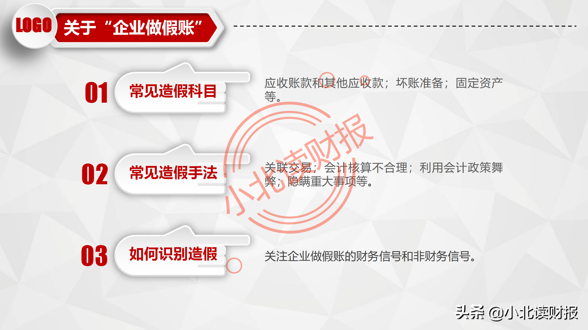 在PPT的第三部分,小北老师跟大家介绍了如何识别企业财务造假。