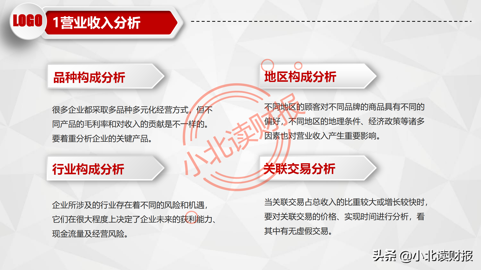 这份PPT同样是为了起到财务分析扫盲的作用,内容比较浅显易懂,大家都能学得会。PPT大纲,即如何分析利润表的大纲如下图所示。