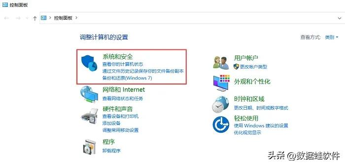 步骤2:点击“系统和安全”里面的“备份和还原”,接着点击“选择要从中还原文件的其他备份”;