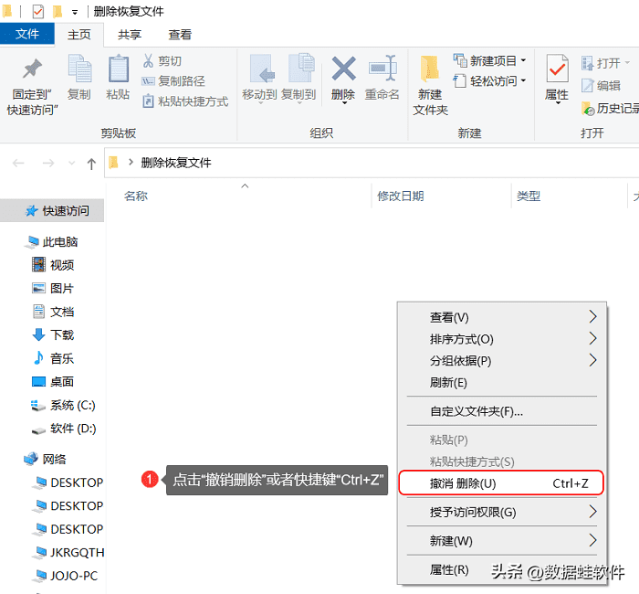 如果被删除的是文件夹里面的内容,同样也没进行下一步的操作。数据误删除怎么恢复?可以进去之前数据保存的文件夹里,点击空白处,鼠标右键出现的页面,点击“撤销删除”或者通过快捷键“Ctrl+Z”来恢复文件。