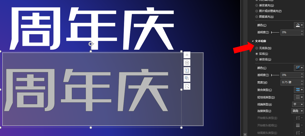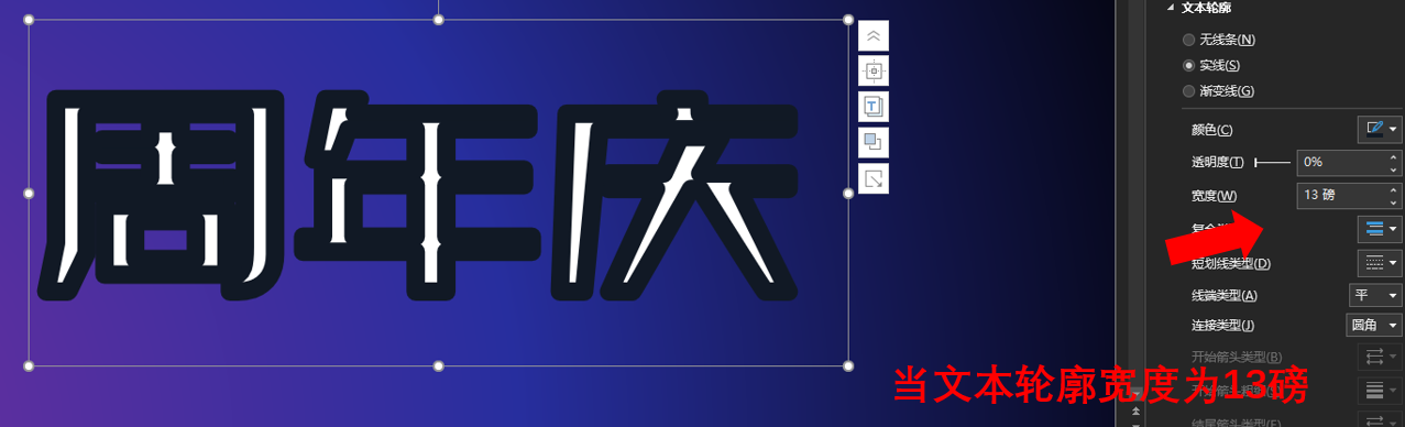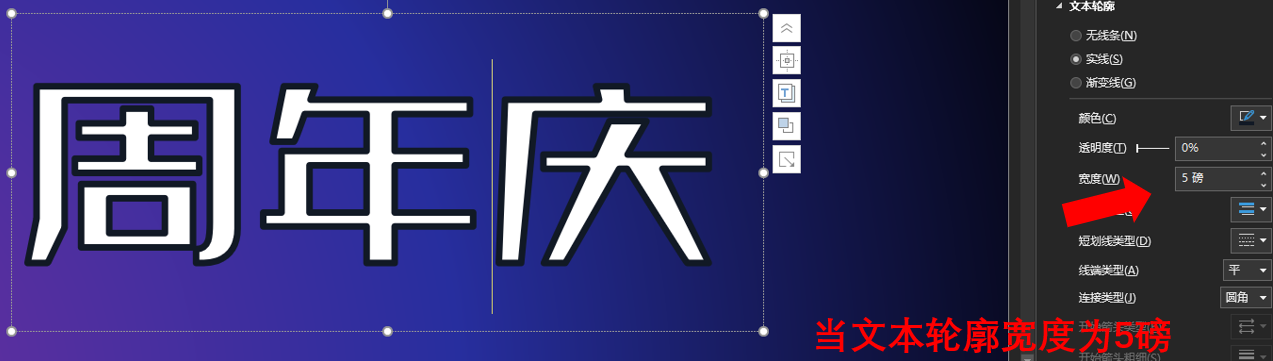 然后我们需要设置文本轮廓的宽度数值: