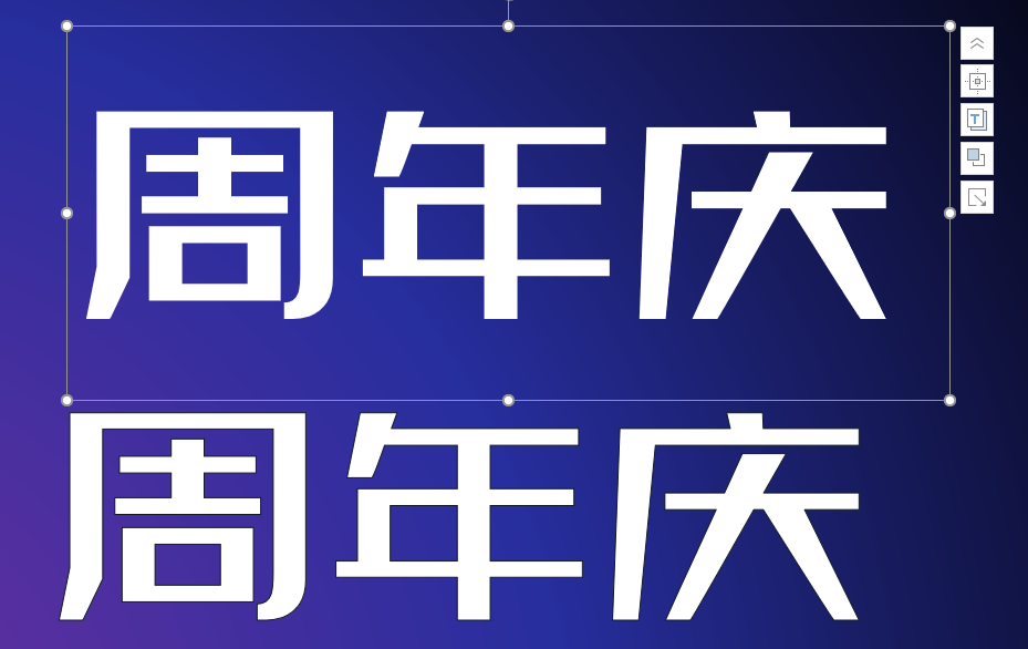 描边字到这里就已经做好了。但是,这样的效果明显没有海报中的文字有立体感,其实这里只需要利用好PPT自带的一个小功能,就能做出微立体的效果!
