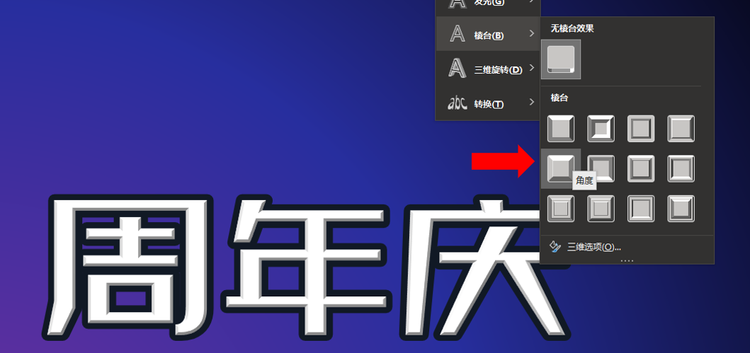 我们进行操作,找到棱台这个效果,选择对应的效果预设: