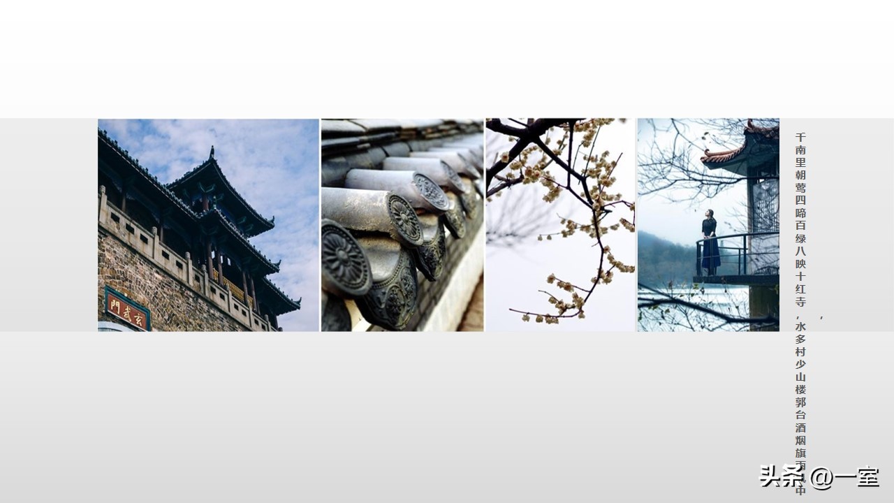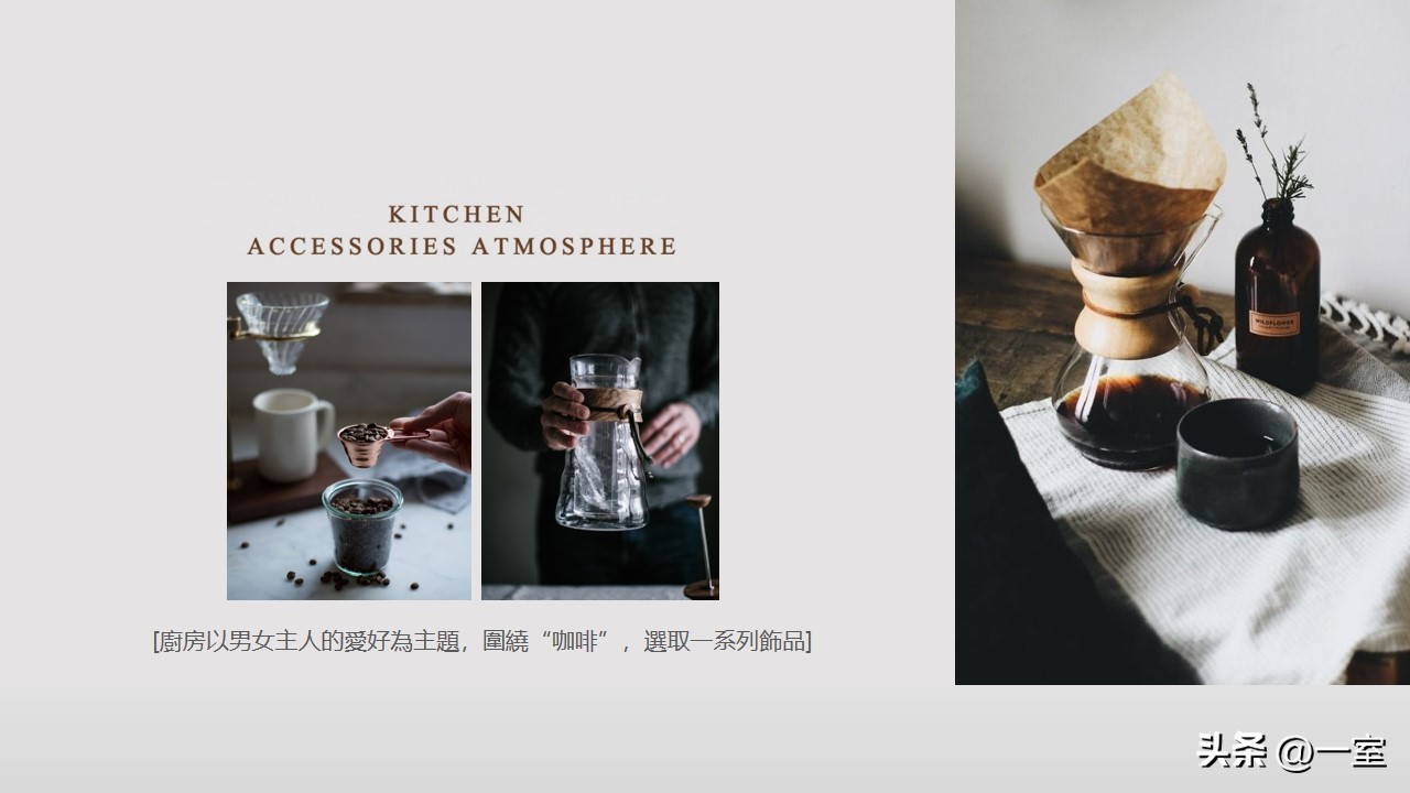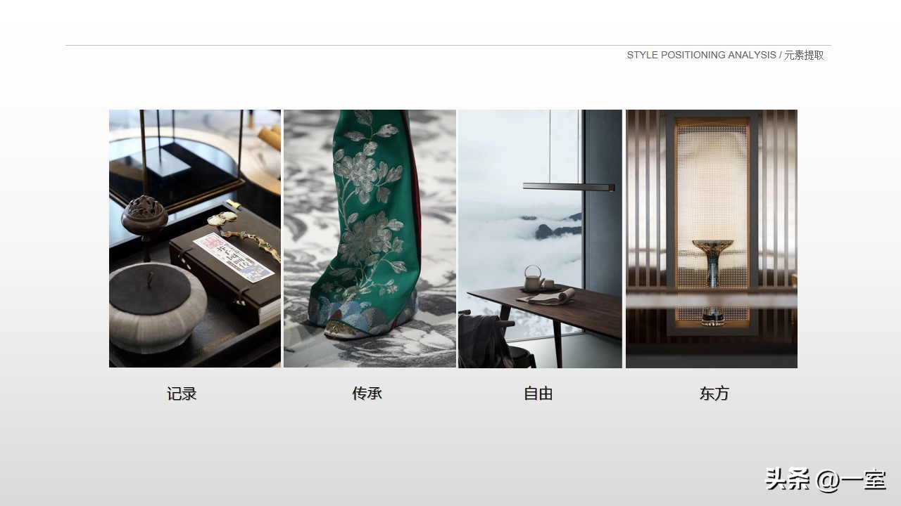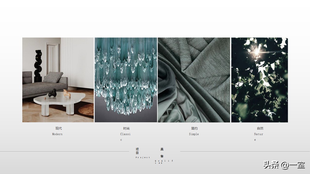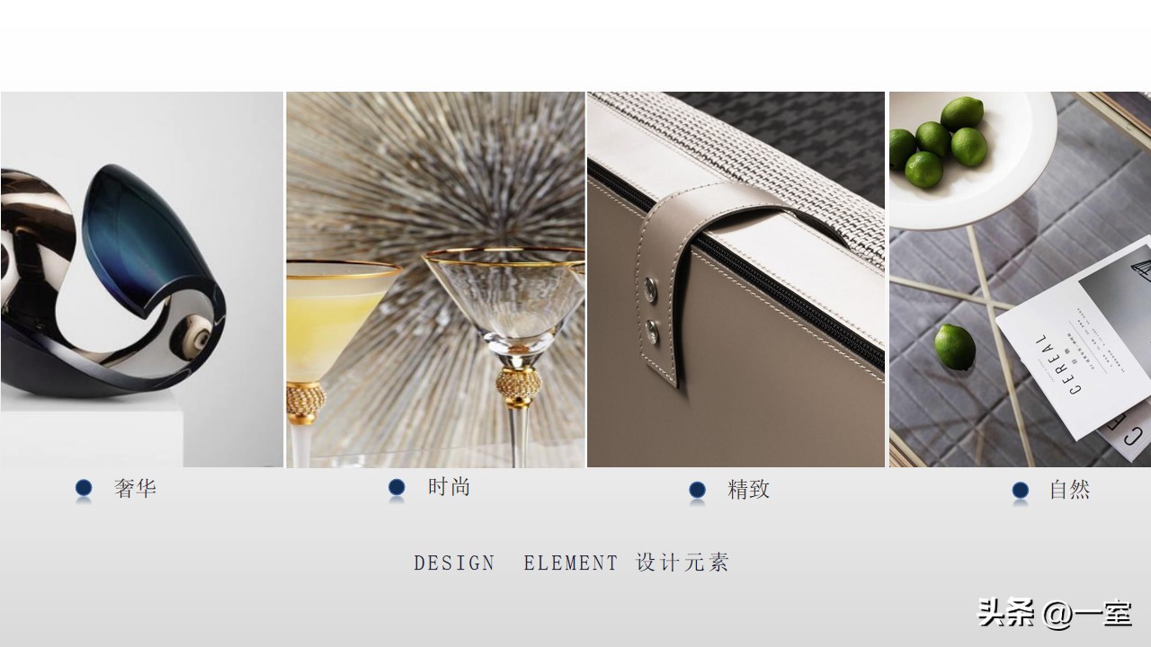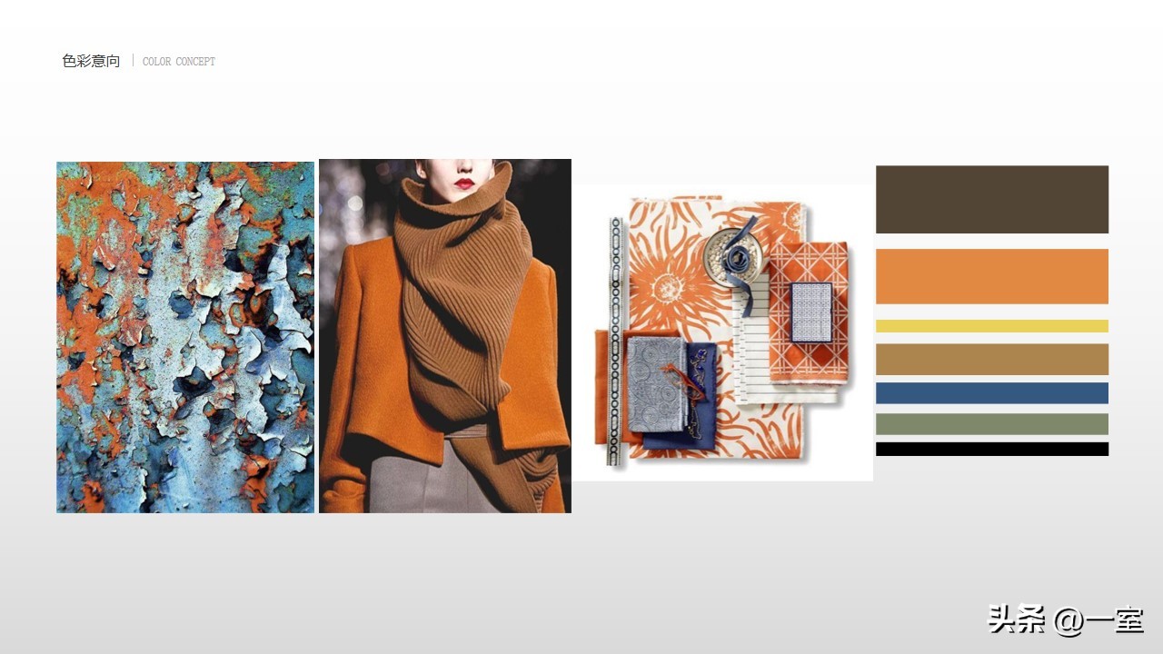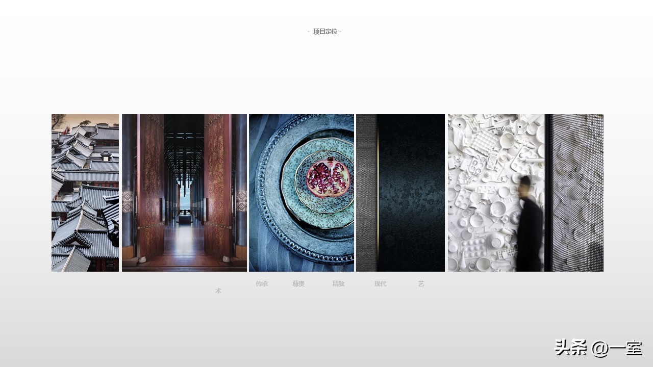 一般在PPT的开头,会有概念氛围图,从这里开始,内容就已经与设计方案挂钩了。这个概念氛围图可以是自然、建筑元素,也可以是地域、艺术元素等等。