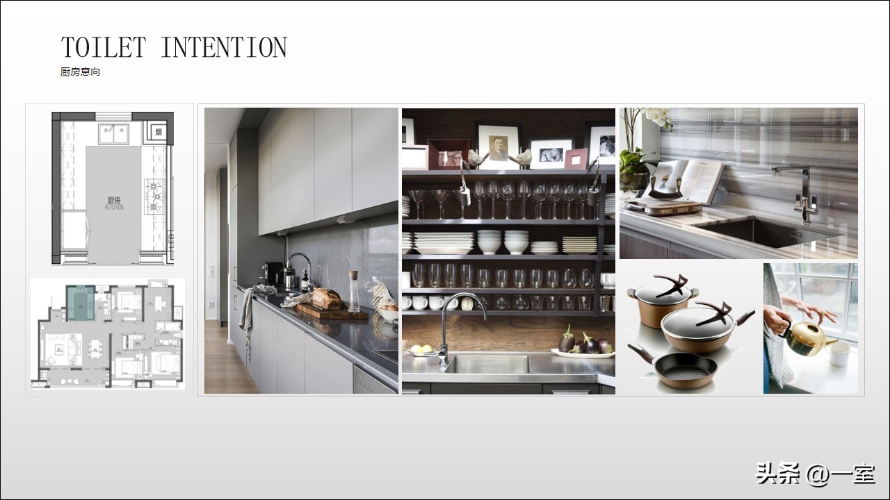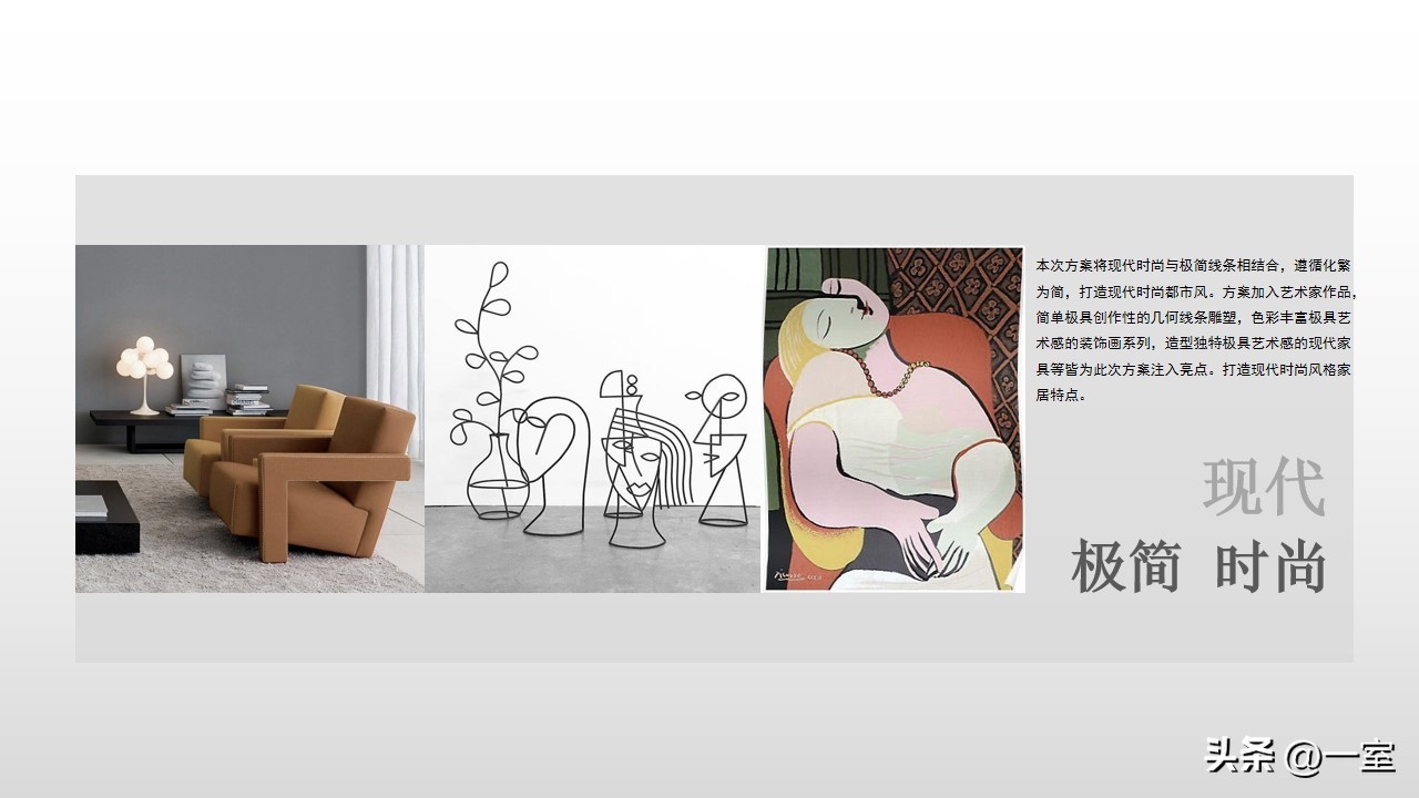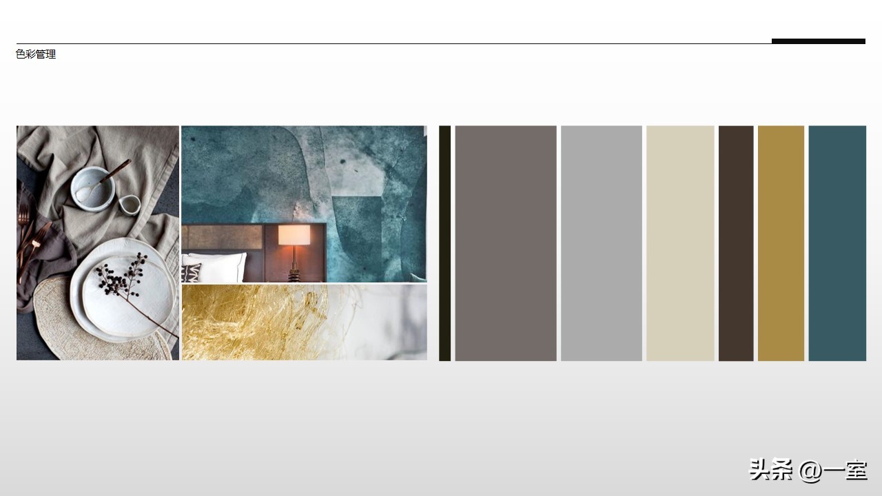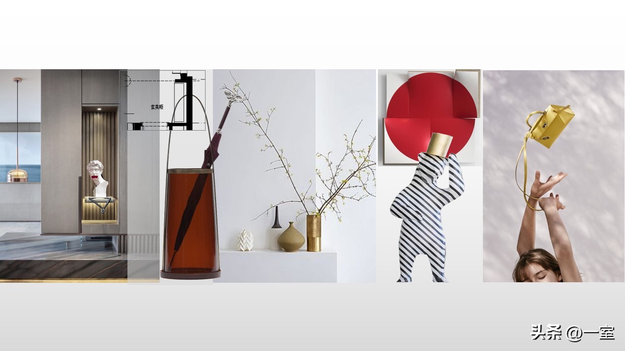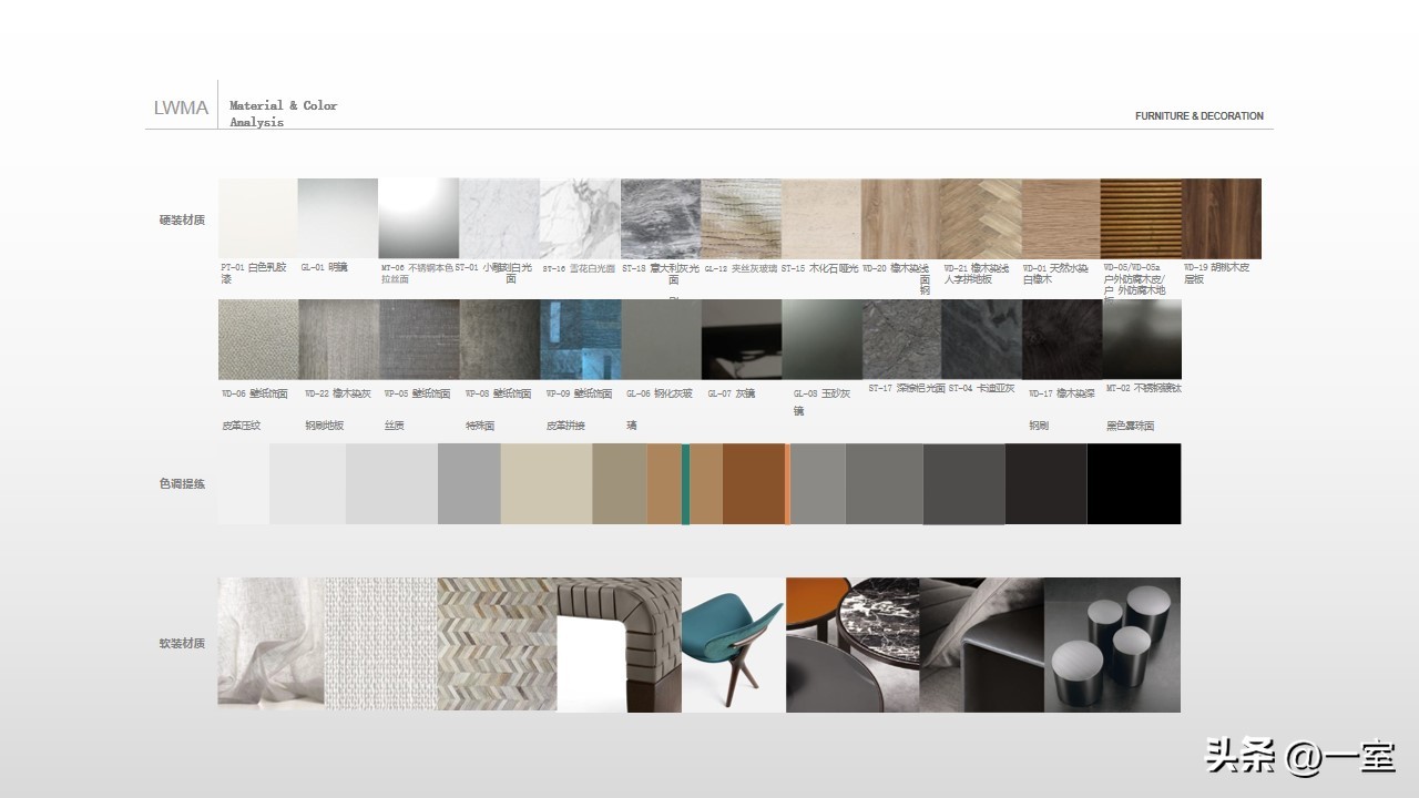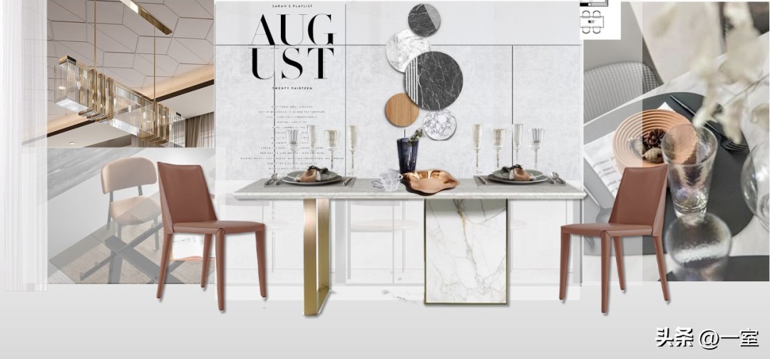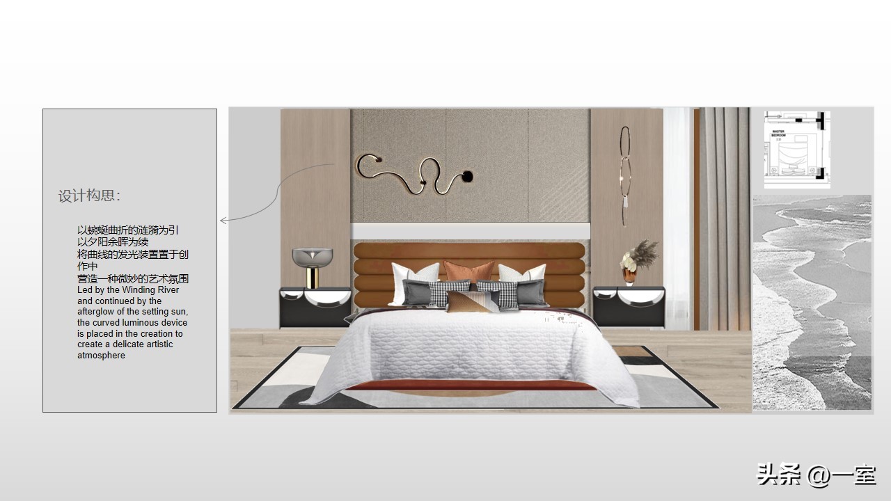软装意向一般不会出现在最初阶段的PPT中,当设计方案基本确定时,下一步到了深入设计的效果图阶段时,软装意向就该确定了。