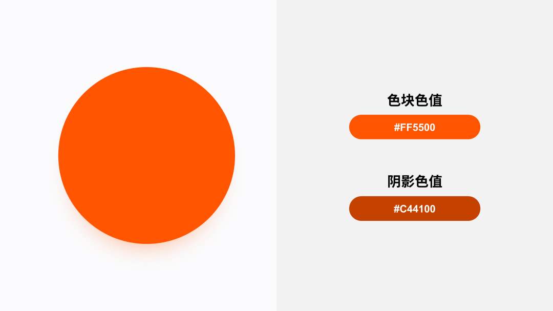 如果页面上的色块为彩色,那么,我们尽量也选择彩色作为阴影色,只是阴影的色彩,比色块色值更深一些即可: