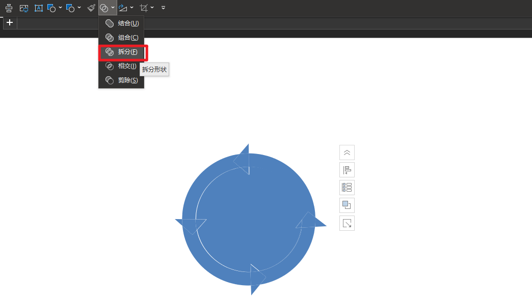 再选中所有图片,在合并形状中,选择拆分,并去除掉多余的形状。