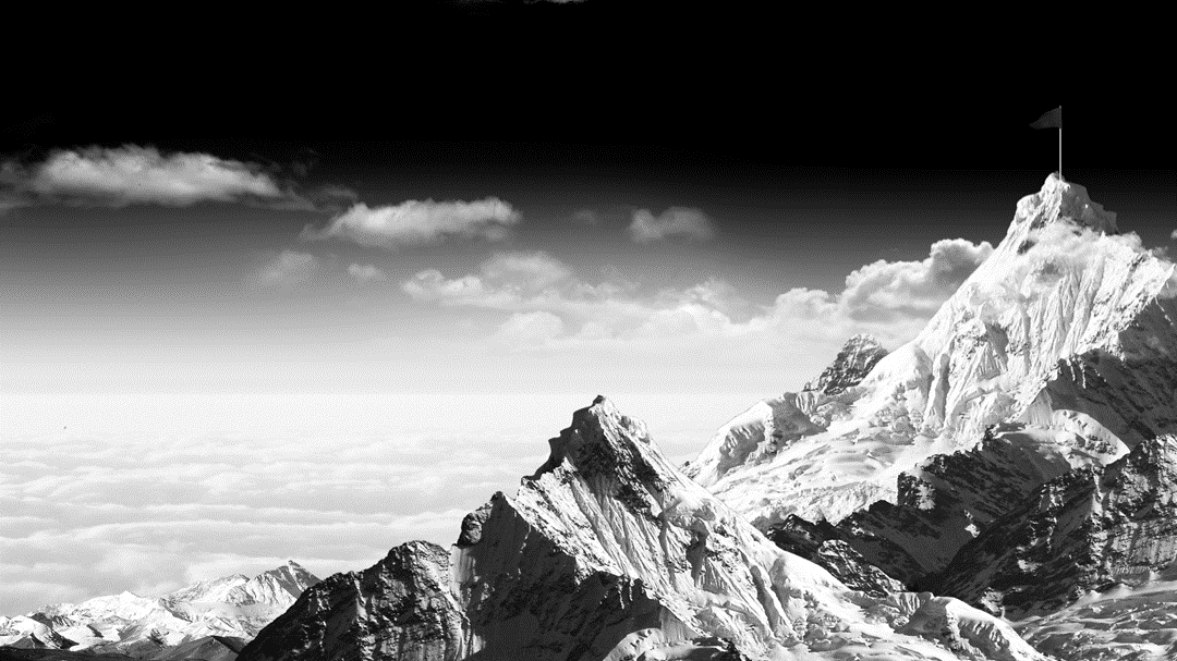 然后,在图片上方叠加一层黑色的半透明蒙板,并且沿着山脊,勾勒出一根线条,作为时间轴的轴线:
