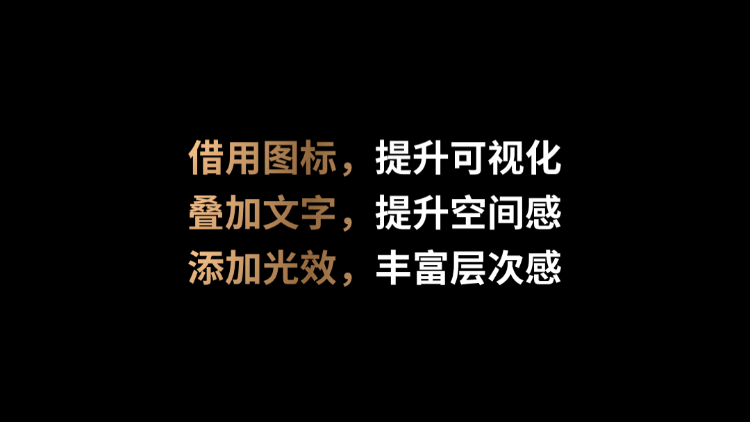 这里要提醒一个细节,对于黑金风格,千万不要出现大面积的金色,否则会显得很廉价。