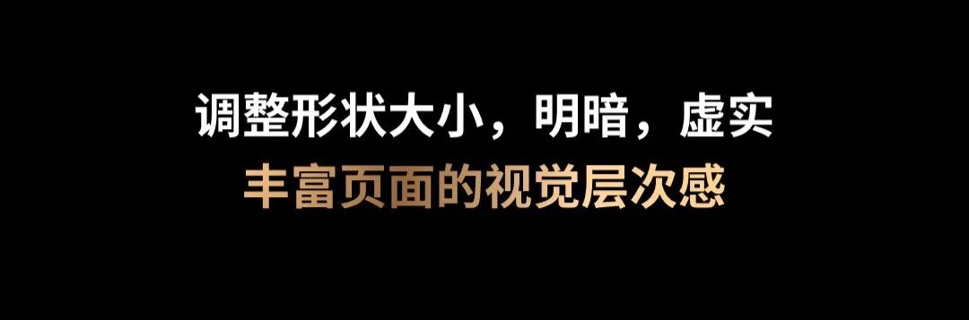 但是一定要注意,我们可以通过调整形状的大小、明暗,还有虚实,让页面的色彩变得更加丰富: