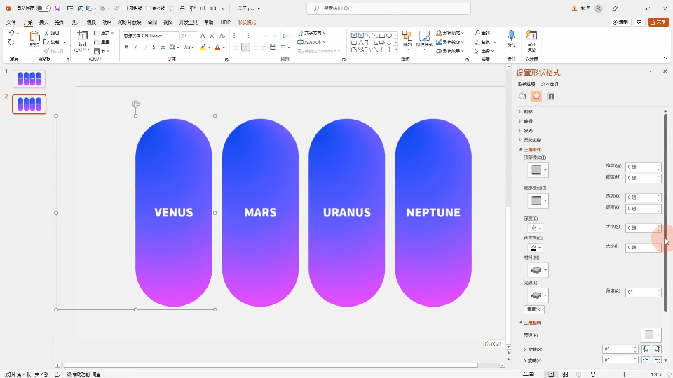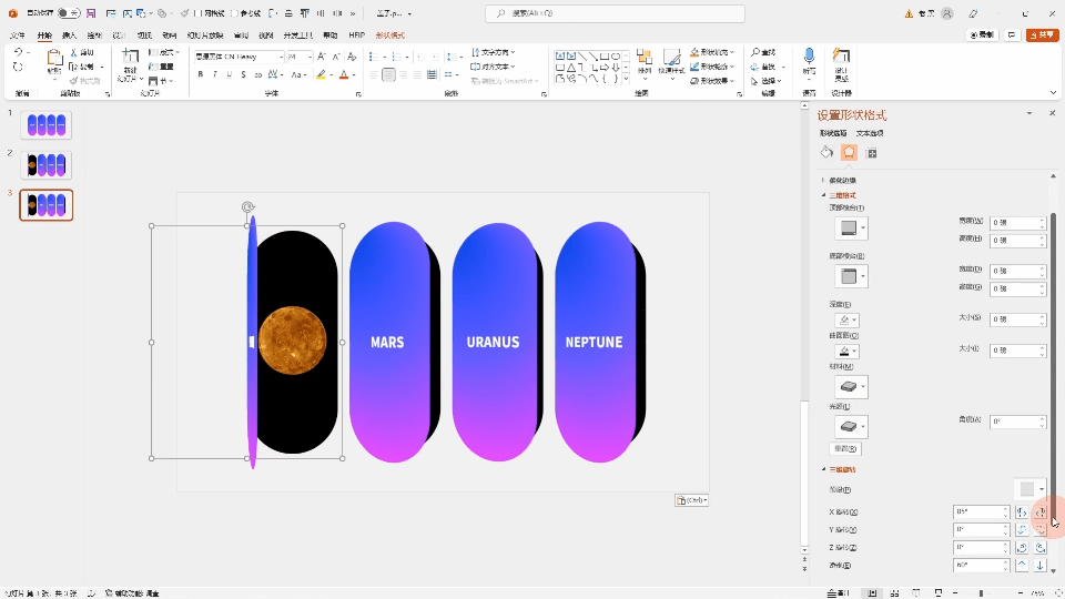 可以赋予形状终点三维旋转角度。