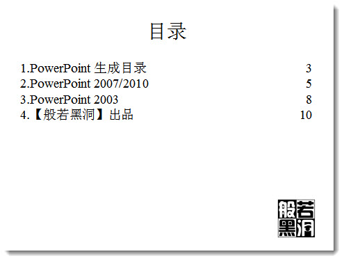 大概PPT最初的开发者也没有想到,PowerPoint甚至会应用到工作汇报以及咨询报告这种场合。所以不管是没有考虑还是有意为之,开发者没有为PowerPoint添加生成目录的功能。确实,在演讲类的PPT中,这样的功能没有什么意义,但无论对于教学课件,还是长达几十页的文档报告,我们都常常需要为PPT生成目录,以方便读者自己查阅PPT中的内容,特别是在PPT被打印在纸张上之后。那么如何才能生成目录呢?