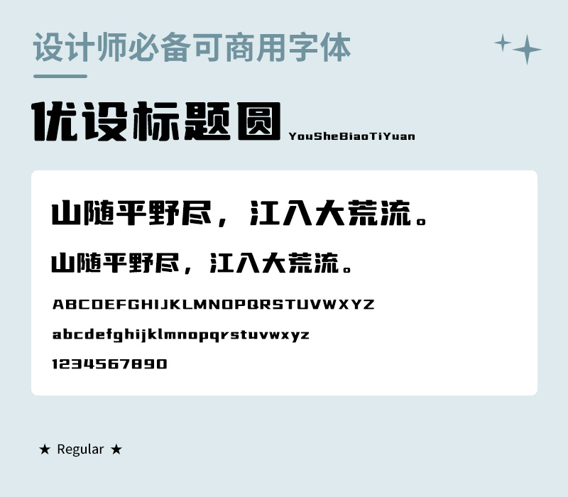 这个字体在优设标题黑的基础上做了圆角处理,显得更有亲和力,特别适合大众化使用场景的大标题中使用,而且比较符合当下的潮流风格。