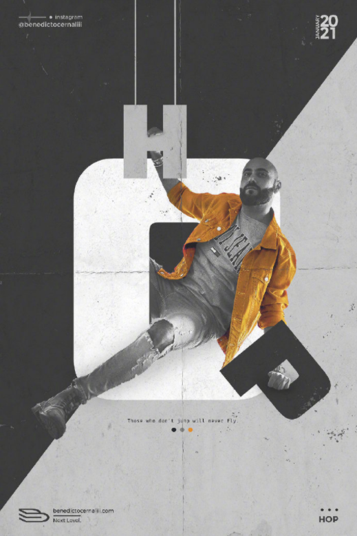 穿插效果,可以增强页面层次感和动感,同时也能增加视觉冲击力!经常用在运动风格的海报设计中,可以增强画面动感~
